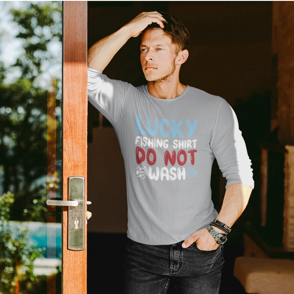 Lucky Fishing Shirt Men Long Sleeve Shirt