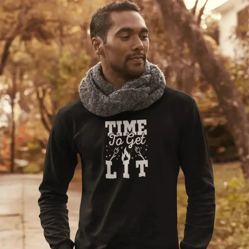Time to Get Lit Preshrunk Fleece Long sleeve printed design for Men. This Long sleeve is perfect for anyone who loves Catching and Fishing and is a great gift for your loved ones, family, and friends.