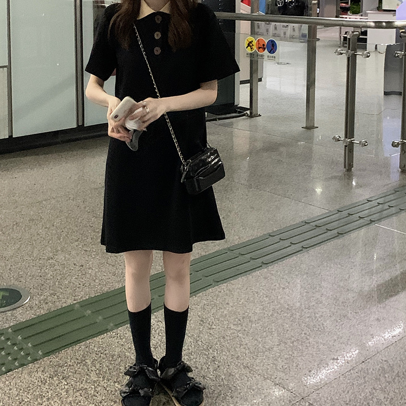 View compareWomen's Contrast Color POLO Collar Loose Slim Short Sleeve Mid Length T-Shirt Dress